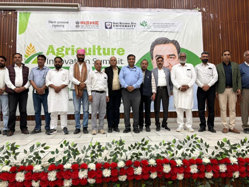 हनुमानगढ़। शिक्षा के क्षेत्र में अग्रणी संस्थान श्री खुशाल दास विश्वविद्यालय में एग्रीकल्चर इनोवेशन समिट-2026 के अंतर्गत कृषि स्टार्टअप्स के लिए कृषि और प्रसंस्कृत खाद्य उत्पाद निर्यात विकास प्राधिकरण (एपीड़ा) द्वारा विशेष ओरिएंटेशन कार्यक्रम का आयोजन किया गया। कार्यक्रम का शुभारंभ विश्वविद्यालय प्रशासन ने मुख्य अतिथि एवं विशिष्ट अतिथियों का साफा पहनाकर एवं पुष्पगुच्छ भेंट कर सम्मानपूर्वक किया। कार्यक्रम के मुख्य अतिथि एवं वक्ता एजीएम, कृषि और प्रसंस्कृत खाद्य उत्पाद निर्यात विकास प्राधिकरण (एपीड़ा) चन्द्रशेखर डुडेजा ने अपने संबोधन में कहा कि वे 20 से अधिक जिलों का दौरा कर चुके हैं और उनका आगमन तभी सार्थक होगा जब क्षेत्र के प्रगतिशील किसान कृषि निर्यात से जुड़ेंगे। उन्होंने बताया कि वे राजस्थान के प्रभारी हैं तथा एपीड़ा का मुख्यालय दिल्ली में स्थित है। एपीड़ा भारत सरकार का उपक्रम है, जिसकी स्थापना वर्ष 1984 में हुई थी। देशभर में इसके 18 कार्यालय संचालित हैं तथा 18 प्रमुख उत्पाद श्रेणियां निर्यात के अंतर्गत आती हैं। भारत के कुल कृषि निर्यात में एपीड़ा का लगभग 50 प्रतिशत योगदान है, जिसमें बासमती एवं सामान्य चावल का निर्यात सर्वाधिक है।