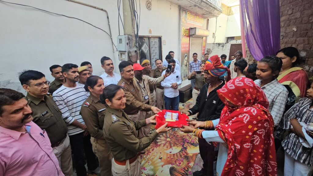 वृत्त कार्यालय हनुमानगढ़ तथा पुलिस थाना हनुमानगढ़ जंक्शन के अधिकारी एवं कर्मचारी एकजुट होकर अपने स्टाफ के ही सफाई कर्मचारी धीरज कुमार की पुत्री पूजा के विवाह समारोह में ‘भाई’ की भूमिका में पहुंचे और पारंपरिक ‘मायरा’ रस्म निभाई। विवाह समारोह के दौरान जब खाकी वर्दी पहने पुलिसकर्मी पारंपरिक रीति-रिवाजों के साथ समारोह स्थल पर पहुंचे, तो उपस्थित लोगों की आंखें नम हो उठीं। मायरे की रस्म के अंतर्गत पुलिस अधिकारियों व कर्मचारियों ने पूजा को चुनरी ओढ़ाई, नेग भेंट किया और विवाह हेतु आवश्यक घरेलू सामग्री प्रदान की। यह दृश्य केवल एक औपचारिकता नहीं था, बल्कि उसमें आत्मीयता, अपनत्व और पारिवारिक भावनाओं की स्पष्ट झलक दिखाई दे रही थी। इस अवसर पर पुलिस अधिकारियों ने स्पष्ट संदेश दिया कि कार्यालय में कार्यरत प्रत्येक कर्मचारी, चाहे उसका पद कुछ भी हो, पुलिस परिवार का अभिन्न हिस्सा है। उसके सुख-दुख में साथ खड़ा होना केवल नैतिक जिम्मेदारी ही नहीं, बल्कि मानवीय कर्तव्य भी है।