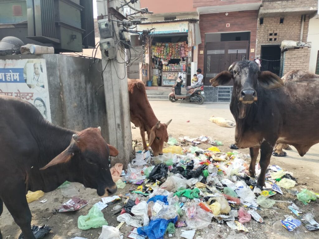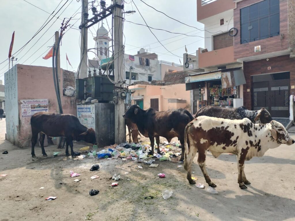 स्थानीय लोगों के अनुसार मुख्य चौक पर दिनभर निराश्रित पशुओं, खासकर नंदियों की भरमार रहती है। कचरे में मुंह मारते हुए ये पशु उसे चारों तरफ फैला देते हैं। कई बार नंदियों की आपसी जोर-अजमाइश में आसपास खड़े वाहनों को नुकसान पहुंचा है।
