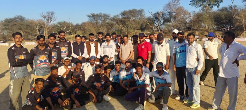 ऐलनाबाद। खंड के गांव चिलकनी ढाब में विशाल क्रिकेट महाकुंम्भ का समापन किया गया जिसमें तीन राज्यों की लगभग 80 टीमों ने भाग लिया, समापन समारोह में मुख्य अतिथि के तौर पर युवा अंतराष्ट्रीय खिलाड़ी प्रदीप नरवाल विशेष तौर पर पहुंचकर युवाओं को प्रेरित किया कार्यक्रम में पहुंचने पर प्रदीप नरवाल को रथ पर बैठाकर,घोड़ों को आगे आगे चलाकर,ढोल नगाड़ों, आतिशबाजी,पटाखे फोड़ गांव वासियों व समाजसेवी राकेश सिहाग (ठेकेदार) ने भव्य स्वागत किया, बाद में राजस्थान के गांव रामसरा व जींद जिले के जाझ टीम के बीच क्रिकेट मैच.खेला गया जिसमें जाझ ने पहले टॉस जीतकर पहले बल्लेबाजी करते हुए 6 ओवर में 82 रनों का लक्ष्य रखा जिसमें अमित ने अपनी टीम के लिए 16 गेंदों में 52 रनों की शानदार पारी खेली , 82 रनों के लक्ष्य का पीछा करते हुए रामसरा की टीम 6 ओवर में 56 रन ही बना पाई जिसमें गोरू अपनी टीम के लिए 25 गेंदों में 50 रन बनाएं , मुख्य आयोजनकर्ता युवा समाजसेवी राकेश सिहाग ने कहां कि युवाओं को ज्यादा से ज्यादा खेल प्रतियोगिता में भाग लेना चाहिए चाहें कोई भी खेल हों, खेलने से मानसिक, स्वास्थ्य के तौर पर हम मजबूत होते, उन्होंने युवाओं को संदेश देते हुए कहां कि इस तरह समय समय पर टूर्नामेंट का आयोजन करना चाहिए यह बहुत ही शानदार प्रतियोगिता रहीं।