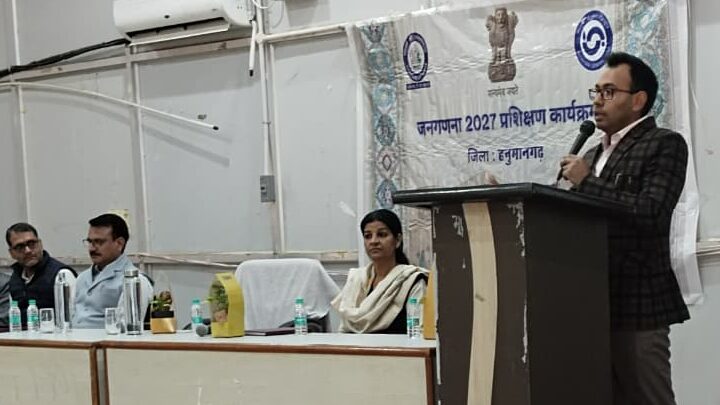हनुमानगढ़। जनगणना–2027 के प्रथम चरण के अंतर्गत मकान सूचीकरण एवं मकान गणना कार्य हेतु दो दिवसीय जिला स्तरीय प्रशिक्षण कार्यक्रम का शुभारंभ हनुमानगढ़ टाउन के पंचायत समिति सभागार में शुक्रवार को हुआ। कार्यक्रम की अध्यक्षता प्रमुख जनगणना अधिकारी एवं जिला कलेक्टर डॉ. खुशाल यादव ने की। कलेक्टर डॉ. यादव ने अधिकारियों को संबोधित करते हुए कहा कि जनगणना राष्ट्रीय महत्व का कार्य है, जिसे पूर्ण गंभीरता, पारदर्शिता और शुद्धता के साथ संपन्न करना आवश्यक है। उन्होंने अधिकारियों को निर्देश दिए कि वे प्रशिक्षण को गंभीरता से लें, ताकि फील्ड कार्य के दौरान किसी प्रकार की त्रुटि न हो और निर्धारित समय-सीमा में कार्य पूरा किया जा सके। उन्होंने चार्ज स्तर पर नियुक्त अधिकारियों को अपने दायित्व जिम्मेदारी से निभाने के निर्देश भी दिए।