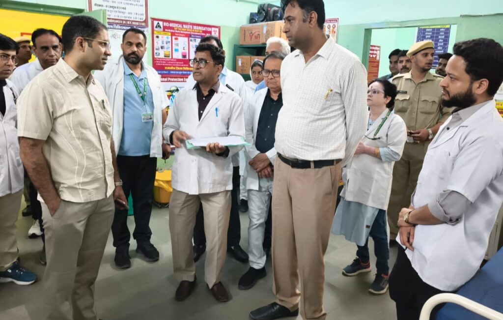 श्रीगंगानगर। जिला कलेक्टर डॉ. अमित यादव ने शनिवार को राजकीय जिला चिकित्सालय और राजकीय मेडिकल कॉलेज का निरीक्षण कर अस्पताल की व्यवस्थाओं का जायजा लिया। इस दौरान उन्होंने अधिकारियों को निर्देश दिए कि अस्पताल में आने वाले प्रत्येक मरीज की गंभीरता से जांच की जाए और उन्हें समय पर समुचित उपचार उपलब्ध कराया जाए। निरीक्षण के दौरान जिला कलेक्टर ने एमसीएच भवन, इमरजेंसी, मुख्य आईसीयू, रामाश्रय वार्ड, नशामुक्ति वार्ड, ब्लड बैंक, ओपीडी और पूछताछ काउंटर का अवलोकन किया।