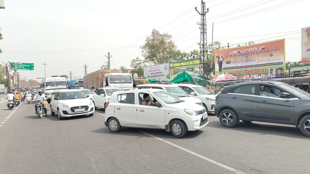 हनुमानगढ़। टाउन में सेंट्रल पार्क के सामने गुरुवार को उस समय अचानक यातायात पूरी तरह ठप हो गया, जब धान मंडी से गेहूं से भरे ट्रोले एफसीआई गोदाम की ओर रवाना हुए। महज 15 मिनट के भीतर दोनों ओर करीब एक किलोमीटर लंबी वाहनों की कतारें लग गईं, जिससे आमजन को भारी परेशानी का सामना करना पड़ा। जानकारी के अनुसार भारतीय खाद्य निगम की ओर से गेहूं परिवहन के लिए निर्धारित रूट के तहत ट्रोलों को नई धान मंडी से चुंगी नंबर 6 होते हुए फ्लाईओवर पार कर कोहला नहर के साथ एफसीआई गोदाम तक पहुंचना है। लेकिन सेंट्रल पार्क के पास यू-टर्न की व्यवस्था ने यातायात व्यवस्था को पूरी तरह बिगाड़ दिया।