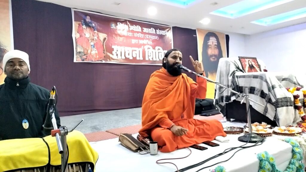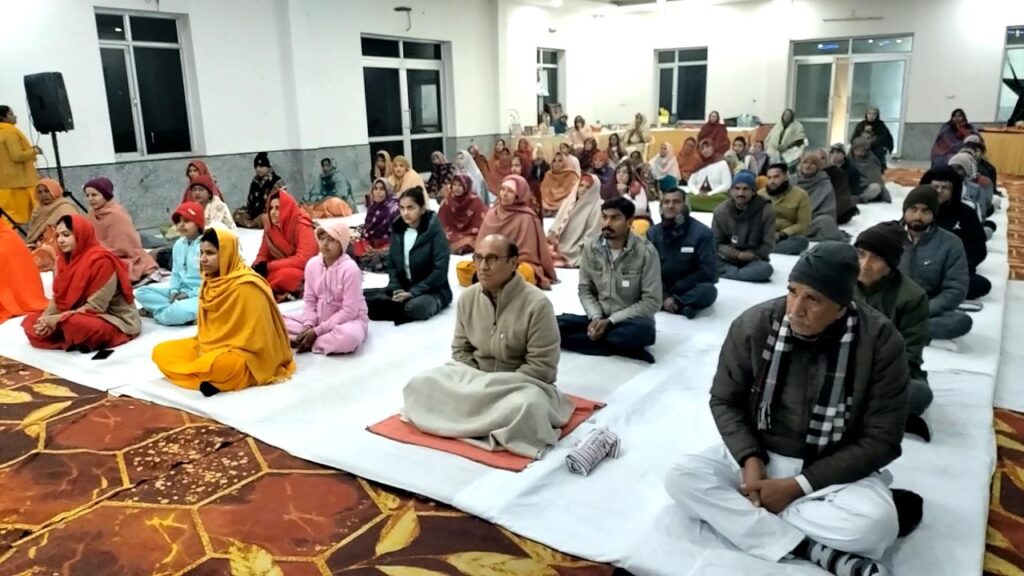 फलत: अशांति, अवसाद, अज्ञानता, अन्याय, अभाव, शोषण व अनैतिक मानव मूल्यों से ग्रसित मानव समाज पतन की खाई में गिरता चला जा रहा है। स्वामी ने बताया की अज्ञानता, असत्य, अन्याय मानव मन का स्वभाव है। जो को मनुष्य को अन्धकार की ओर ले जाते हैं। अंधकार के साम्राज्य में मनुष्य को कभी भी समाधान नहीं मिल सकता। कार्यक्रम में साध्वी निशा भारती व सविता भारती ने वैदिक मंत्रोच्चारण कर विश्व शांति की मंगल प्रार्थना की। साधकों ने सामूहिक साधना कर आत्मिक शांति व दिव्य अनुभूतियों को प्राप्त किया।