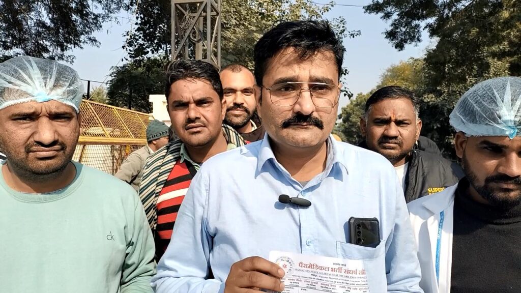 इस मौके पर पैरामेडिकल भर्ती संघर्ष समिति जिलाध्यक्ष अंकित गोदारा, नर्सिंग एसोसिएशन जिलाध्यक्ष बंसीलाल वर्मा, मोहन सोनी, विकास, प्रवीण भोभिया, राजेश शर्मा, विजय स्वामी, शिव यादव, अमित पूनिया, विकास स्वामी, मोहन सोनी, बृजेश स्वामी, लालचंद, यश चिलाना, सतनाम सिंह मौजूद थे।