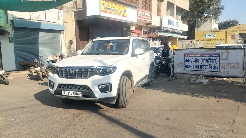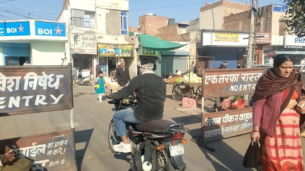 हनुमानगढ़। टाउन शहर की सब्जी मण्डी में पिछले कुछ समय से ट्रैफिक व्यवस्था बिगड़ी हुई है। बावजूद इसके इस तरफ कोई ध्यान नहीं दिया जा रहा। यातायात पुलिस की ओर से वाल्मीकि चौक के आसपास का क्षेत्र नो एंट्री एरिया घोषित किया गया है। बकायदा इस संबंध में सूचना के लिए संकेतक बोर्ड भी लगाए गए हैं। चौक पर होमगार्ड जवान तैनात कर बैरिकेड्ंिग की गई है लेकिन बावजूद इसके चौपहिया वाहन सब्जी मण्डी में आने से ट्रैफिक व्यवस्था बिगड़ रही है। सब्जी मण्डी के बिल्कुल सामने ही पुलिस थाना है लेकिन फिर भी यहां शाम के समय जाम की स्थिति पैदा हो जाती है।