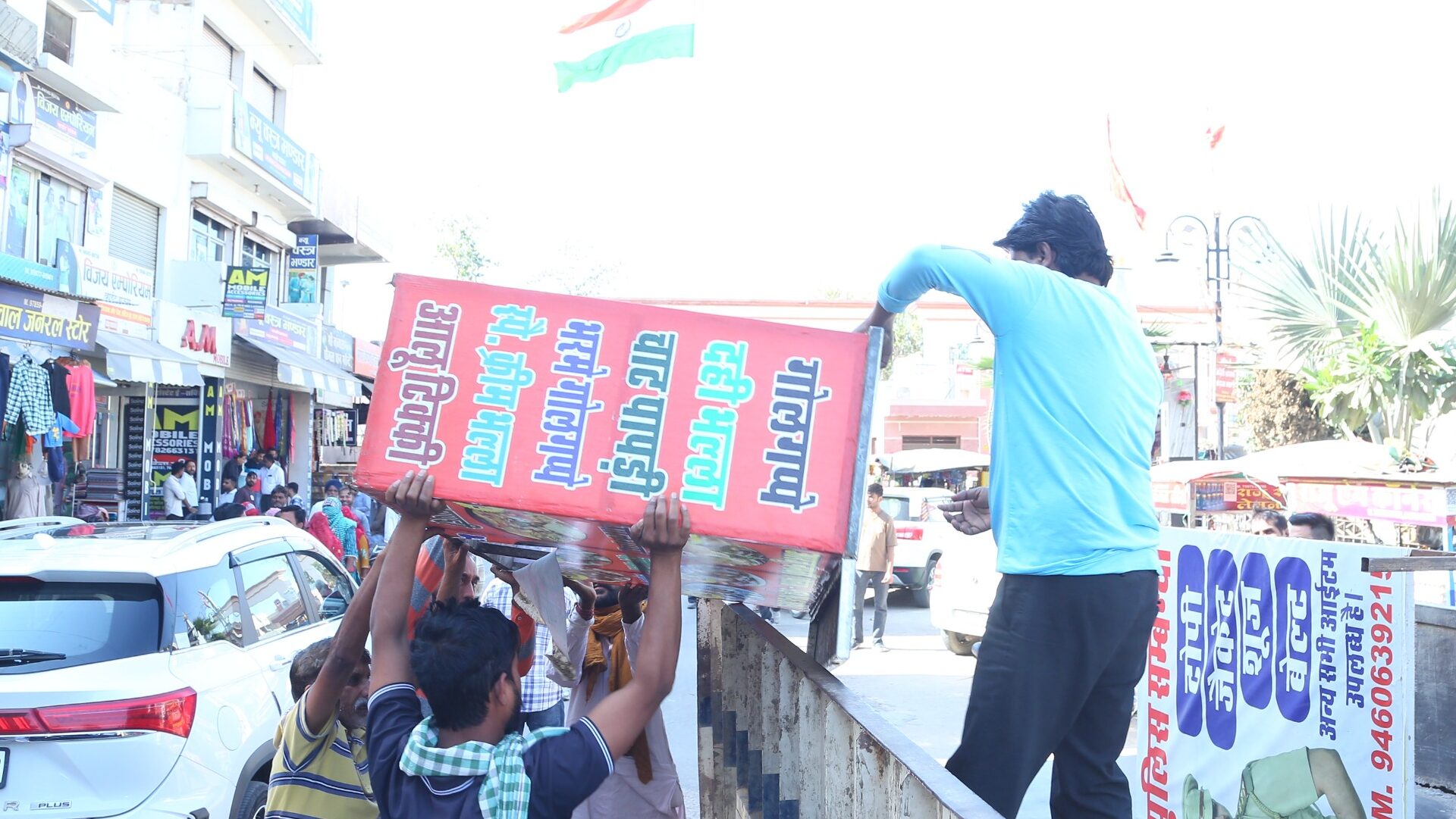 -मुख्य बाजार में नगरपरिषद का अतिक्रमण हटाओ अभियान, सड़क से हटवाया सामान