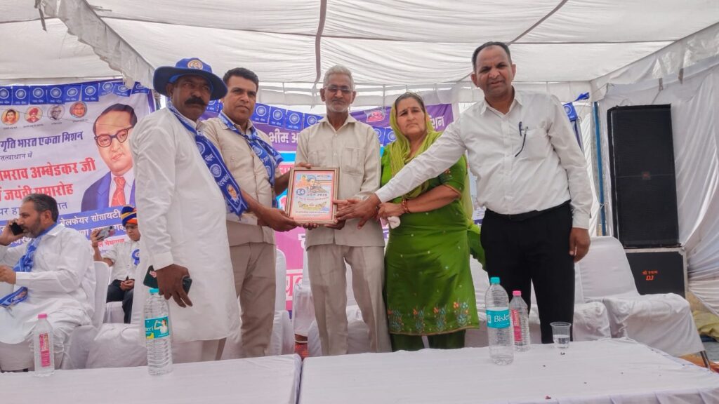 हनुमानगढ़। भीम आर्मी संविधान जागृति भारत एकता मिशन के तत्वावधान में संविधान निर्माता डॉ. भीमराव अंबेडकर की 135वीं जयंती के मौके पर जंक्शन के वार्ड नंबर 58, सुरेशिया स्थित सामुदायिक भवन में प्रतिभा सम्मान समारोह आयोजित किया गया। कार्यक्रम में कक्षा 10वीं एवं 12वीं बोर्ड परीक्षा में 85 प्रतिशत से अधिक अंक प्राप्त करने वाले प्रतिभावान छात्र-छात्राओं को सम्मानित किया गया। इसके पश्चात शहर में नमो भीम जागृति रैली निकाली गई, जिसमें नागरिकों को शिक्षा, संगठन और समानता का संदेश दिया गया।