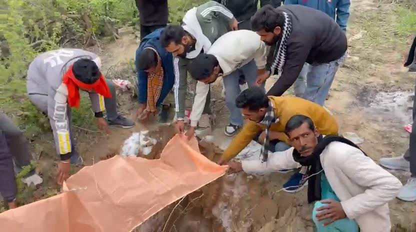 हनुमानगढ़। गांव जोरावरपुरा में बने प्राचीन कुएं में एक निराश्रित गाय गिर गई। गाय को समय रहते बाहर न निकाले जाने के कारण पानी में डूबने से गाय की मौत हो गई। ओम बन्ना टाइगर फोर्स व गऊ रक्षा दल के सदस्यों ने आपसी सहयोग से जेसीबी मंगवाकर मृत गाय के शव को प्राचीन कुएं से बाहर निकलवाया और गड्ढा खोदकर विधि-विधान से शव दफना दिया।