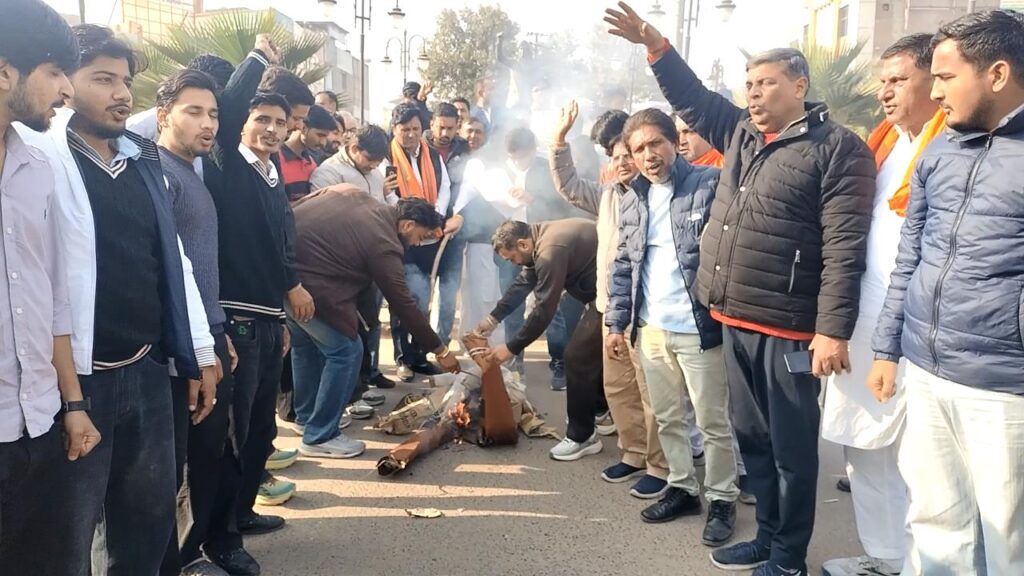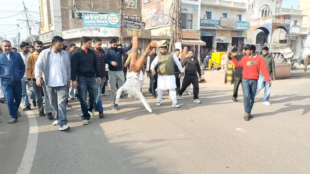 हनुमानगढ़। बांग्लादेश में अल्पसंख्यक हिंदुओं पर हो रहे अत्याचारों से सर्व समाज में रोष व्याप्त है। इसी कड़ी में विश्व हिंदू परिषद-बजरंग दल कार्यकर्ताओं ने बांग्लादेश में हिंदू अल्पसंख्यक युवक दीपू दास की नृशंस हत्या कर उसके शव को जलाने एवं बांग्लादेश में हिंदुओं पर हो रहे अत्याचारों के विरोध में मंगलवार को रोष स्वरूप जंक्शन स्थित शहीद भगत सिंह चौक पर जिहादी आतंकवाद का पुतला जलाया। जिहादी आतंकवाद के पुतले को जलाने से पूर्व पुतले को मुख्य मार्ग पर उसी तरह घसीटा गया। जिस तरह से हिंदू दीपू दास को जलाने से पूर्व सड़कों पर घसीटा गया था। इस मौके पर मौजूद जनसमूह ने एक स्वर में कहा कि चाहे भारत हो या कोई अन्य देश, आज हिंदुओं की विनम्रता और सहनशीलता को उनकी कमजोरी समझकर उसका अनुचित लाभ उठाया जा रहा है। ऐसे में यह आवश्यक है कि जिहादी प्रवृत्ति के व्यक्तियों के खिलाफ हर देश में कठोर एवं प्रभावी कार्रवाई की जाए, ताकि भविष्य में इस प्रकार के अमानवीय कृत्य करने से पहले वे सौ बार सोचने को विवश हों। विश्व हिन्दू परिषद के जिलाध्यक्ष डॉ. निशांत बतरा ने कहा कि एक साल पहले बांग्लादेश में सरकार के पलटे जाने पर वहां पर हिंदुओं पर अत्याचार शुरू हुए। अब दो-तीन दिन पहले जिस तरह निर्दाेष दीपू दास को मारा गया। उसके बाद जिस तरह के नृशंस वीडियो सामने आए, वह वास्तव में दिल दुखाने वाली घटना है। इससे पूरा हिंदू समाज आक्रोशित है। न्याय, मानवता और धर्म की रक्षा के लिए समाज का एकजुट होना आज की आवश्यकता है। उन्होंने मोदी सरकार से मांग की कि बांग्लादेश में हिंदुओं पर हो रहे अत्याचार की घटनाओं पर अंकुश लगाया जाए और हिंदुओं की सुरक्षा सुनिश्चित की जाए। जिहादी मानसिकता को खत्म करने के लिए जरूरत पड़े तो कड़े से कड़े कदम उठाए जाएं। जनता सरकार के साथ है। इस मौके पर कुलदीप नरुका, मोहन चंगोई, चेतन जिन्दल, सुनील चाहर, सुभाष, प्रवीण सहित कई कार्यकर्ता मौजूद रहे।