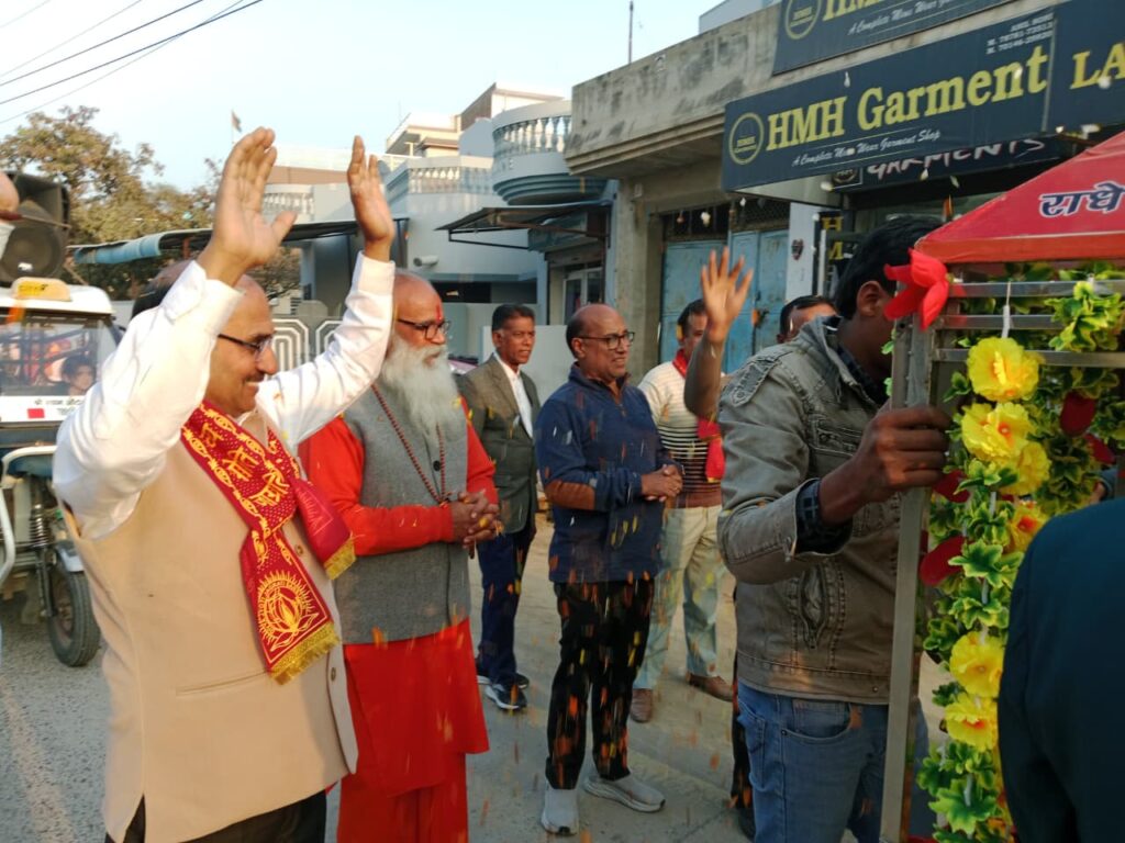 हनुमानगढ़। दिव्य ज्योति जाग्रति संस्थान द्वारा 16 मार्च से 22 मार्च तक अनाज मंडी में आयोजित होने वाली सात दिवसीय श्री मद भागवत कथा के प्रचार-प्रसार हेतु निकाली जा रही श्रृंखला में हनुमान मंदिर, सुरेशिया से तीसरी संध्या फेरी का भव्य आयोजन किया गया।संध्या फेरी का शुभारंभ प्रभु पूजन एवं नारियल फोड़कर किया गया। इसके उपरांत संस्थान की साध्वी बहनों ने अपनी मधुर वाणी में श्री कृष्ण के भजनों के माध्यम से संपूर्ण वातावरण को कृष्णमय कर दिया। मधुर धुनों पर थिरकते श्रद्धालुओं ने पूरे क्षेत्र को भक्ति के रंग में सराबोर कर दिया। यह फेरी विभिन्न मार्गों से होती हुई पुनः मंदिर परिसर पहुँची।
