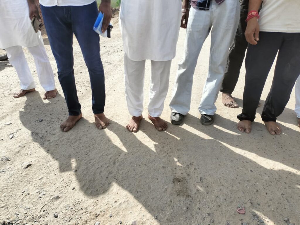 हनुमानगढ़। मूलभूत सुविधाओं के अभाव से जूझ रहे गांव 2 केएनजे के युवाओं ने शुक्रवार को अनूठे तरीके से अपनी मांग जिला प्रशासन तक पहुंचाई। गांव के करीब दर्जनभर युवा पूर्व घोषणा के अनुसार रणवीर सिहाग के नेतृत्व में नंगे पांव गांव से रवाना हुए और करीब साढ़े सात किलोमीटर पैदल चलकर जिला कलक्ट्रेट पहुंचे। यहां उन्होंने जिला कलक्टर को ज्ञापन सौंपकर समस्याओं के समाधान की मांग की। रणवीर सिहाग ने बताया कि गांव में लंबे समय से कई समस्याएं लंबित पड़ी हुई हैं, जिनका अब तक समाधान नहीं हो पाया है। इन समस्याओं के कारण ग्रामीणों को भारी परेशानियों का सामना करना पड़ रहा है। उन्होंने बताया कि गांव 2 केएनजे को नगर परिषद की सीमा में शामिल कर लिया गया है, लेकिन इसके बावजूद गांव की गलियां, नालियां और आम रास्ते अब भी कच्चे हैं और उनकी ओर कोई ध्यान नहीं दिया जा रहा। पुरानी सड़कों की हालत बेहद खराब है। सड़कें टूटी-फूटी और गड्ढों से भरी हुई हैं, जिनमें बारिश का पानी भर जाता है। इससे आम लोगों और स्कूली विद्यार्थियों को आवागमन में काफी परेशानी होती है। गांव के दो-तीन मुख्य रास्तों पर बनी पुलिया भी टूट चुकी है, जिससे वाहनों के फंसने और दुर्घटना का खतरा बना रहता है। ग्रामीणों ने बताया कि मूल निवास, जाति प्रमाण-पत्र और जन्म प्रमाण-पत्र जैसे जरूरी दस्तावेज बनवाने के लिए उन्हें नगर परिषद के चक्कर काटने पड़ते हैं।