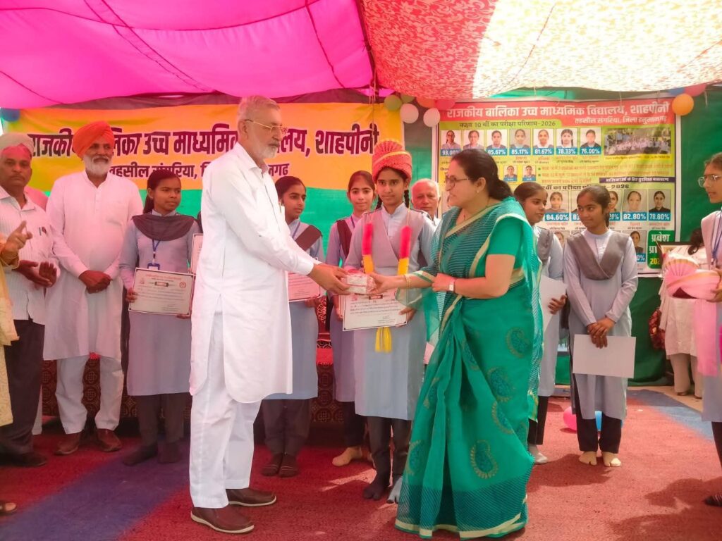 संगरिया/हनुमानगढ़। संगरिया क्षेत्र के गांव शाहपीनी स्थित राजकीय उच्च माध्यमिक विद्यालय परिसर गुरुवार को उत्सव स्थल में तब्दील हो गया, जब यहां आयोजित मेधावी छात्र सम्मान समारोह में उत्कृष्ट प्रदर्शन करने वाली छात्राओं को सम्मानित किया गया।