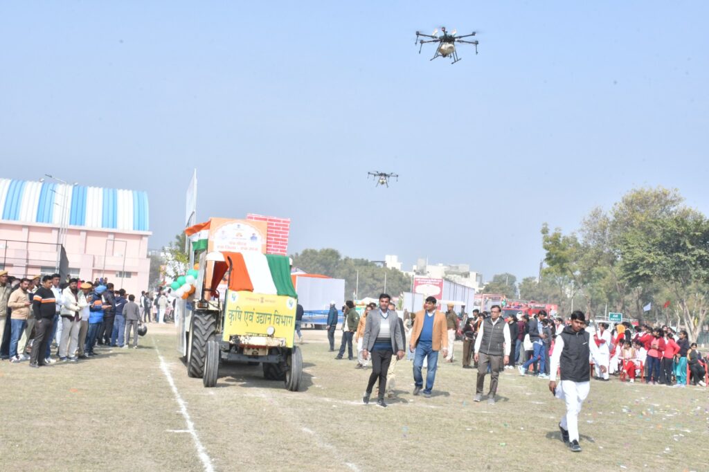 जिला स्तरीय कार्यक्रम में यातयात, साइबर, नशा मुक्त, कृषि एवं उद्यानिकी, सरस डेयरी, सामाजिक न्याय एवं अधिकारिता ने महत्वपूर्ण योजनाओं को लेकर, वन विभाग ने पंच गौरव के तहत शीशम, जिला परिषद ने विकसित भारत जी राज जी, जिला परियोजना समन्वयक सामग्री शिक्षा ने बच्चियों के खेलों और आत्मरक्षा, नवजीवन नशा मुक्त केंद्र की और से नशा मुक्ति को लेकर, सहकारिता विभाग, जन स्वास्थ्य अभियांत्रिकी विभाग, डिस्कॉम की पीएम सूर्य घर मुफ्त बिजली योजना अंतर्गत घरों की छतों पर सोलर पैनल को लेकर, महिला अधिकारिता, महिला एवं बाल विकास विभाग, नगर परिषद ने अग्नि शमन केंद्र को लेकर लाइव डेमोंस्ट्रेशन, चिकित्सा एवं स्वास्थ्य विभाग द्वारा झांकियों का प्रदर्शन किया गया।