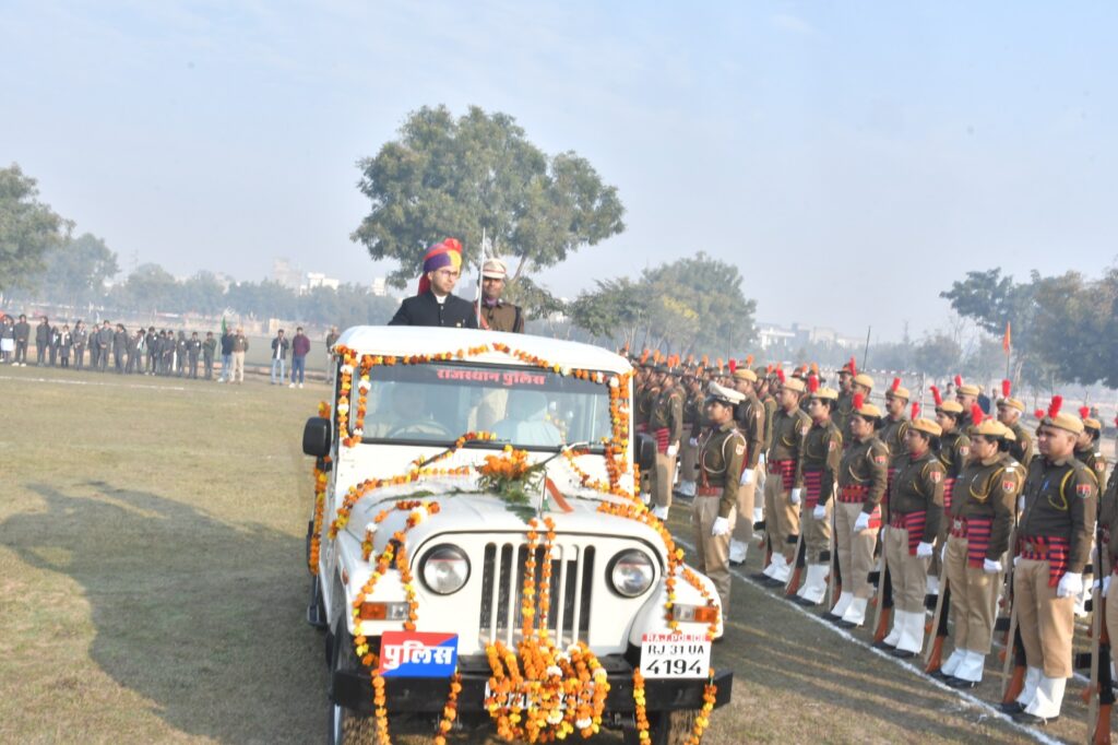 तत्पश्चात मुख्य अतिथि द्वारा परेड का निरीक्षण किया गया। पुलिस लाइन में तैनात उपाधीक्षक श्री राजेंद्र कुमार ने परेड का निरीक्षण करवाया। परेड में विभिन्न सुरक्षा और शिक्षा संगठनों ने अपनी भागीदारी से कार्यक्रम को भव्य रूप से प्रस्तुत किया। मुख्य अतिथि ने परेड में शामिल दलों का निरीक्षण किया, जिनमें थर्ड आर.ए.सी. कम्पनी, राजस्थान पुलिस, होम गार्ड्स, नेशनल कैडेट कोर, भारत स्काउट गाइड्स, और विभिन्न स्कूलों के छात्र-छात्राओं ने भाग लिया। इन दलों का नेतृत्व विशिष्ट अधिकारियों ने किया। परेड के साथ ही बैण्ड प्रदर्शन का आयोजन भी हुआ, जहां पुलिस और विभिन्न स्कूलों के बच्चों ने शानदार धुनों का प्रदर्शन किया। इसके बाद मुख्य अतिथि द्वारा रंग-बिरंगे गुब्बारे छोड़े गए, जिससे वातावरण में उत्सव का माहौल बन गया। महामहिम राज्यपाल के संदेश का पठन अतिरिक्त जिला कलक्टर श्री उम्मेदी लाल मीना द्वारा किया गया। इसके बाद व्यायाम प्रदर्शन हुआ, जिसका नेतृत्व प्रशिक्षकों ने किया। इसके साथ ही घुड़सवारी दस्ते में तैनात पुलिस निरीक्षक श्री मांगीलाल ने घुड़सवारी करते हुए करतब दिखाएं।