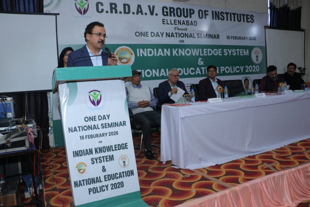 ऐलनाबाद। सी.आर.डी.ए.वी. गर्ल्स कॉलेज और सी.आर.डी.ए.वी. गर्ल्स कॉलेज ऑफ एजुकेशन, ऐलनाबाद के संयुक्त तत्वावधान में सोमवार, 16 फरवरी को ‘भारतीय ज्ञान प्रणाली और एनईपी 2020’ विषय पर एक दिवसीय राष्ट्रीय संगोष्ठी का भव्य आयोजन किया गया। संगोष्ठी का शुभारंभ देवी सरस्वती के समक्ष मुख्य अतिथि सी.डी.एल.यू. सिरसा के कुलगुरू प्रो. विजय कुमार द्वारा दीप प्रज्वलित कर की गई। कार्यक्रम में मुख्य वक्ता डॉ. नरेन्दर सिंह परमार (उपनिदेशक, पुरातत्व एवं संग्रहालय विभाग, हरियाणा सरकार),प्रो. पंकज शर्मा(निदेशक, इमर्जिंग टेक्नोलॉजी सेंटर, सी.डी.एल.यू. सिरसा), प्रो. राजकुमार(निदेशक, आईक्यूएसी (IQAC), सी.डी.एल.यू. सिरसा)थे। इस सेमिनार का मुख्य उद्देश्य भारत की प्राचीन ज्ञान परंपरा और गौरवशाली इतिहास को आधुनिक शिक्षा नीति (NEP 2020) के साथ जोड़ना था। वक्ताओं ने बताया कि इसका लक्ष्य छात्राओं और शिक्षकों को भारतीय मूल्यों, आयुर्वेद, प्राचीन विज्ञान और गणित जैसे विषयों के महत्व को समझाना है, ताकि छात्र अपनी संस्कृति पर गर्व करते हुए वैश्विक स्तर पर नई पहचान बना सकें। साथ ही, नई शिक्षा नीति के क्रियान्वयन और उसके फायदों पर भी विस्तार से चर्चा करना इसका लक्ष्य रहा।