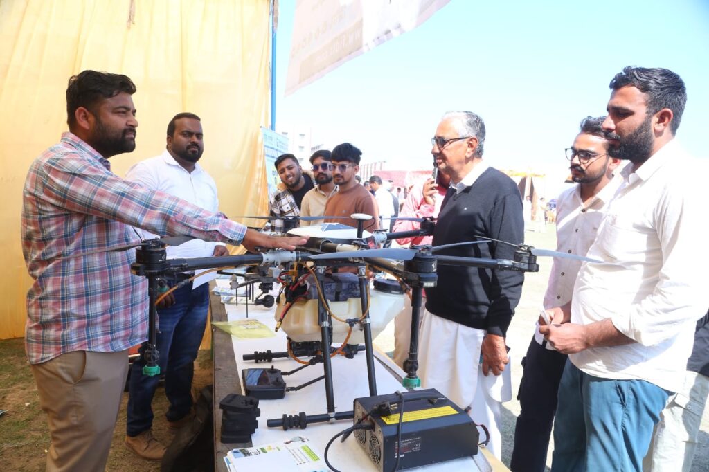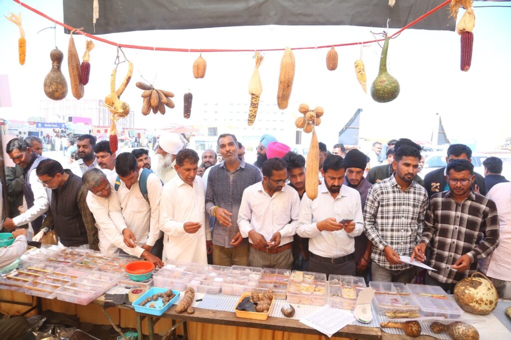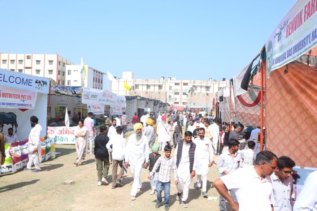 हनुमानगढ़। कृषकों की आय बढ़ाने और आधुनिक तकनीकों को बढ़ावा देने के उद्देश्य से लगाए गए किसान मेले ‘पंच गौरव अन्नदाता से अन्नपूर्णा तक का समृद्धि पथ’ के दूसरे दिन किसानों की भारी भीड़ उमड़ी। दूरदराज के किसान जहां समूहों में आए, वहीं स्थानीय किसान परिवार सहित मेला देखने आए। राजस्थानी – हरियाणवी सांस्कृतिक कार्यक्रमों ने शमां बांध दिया। जिला प्रशासन हनुमानगढ़, एमएसएमई एवं श्री खुशालदास विश्वविद्यालय के संयुक्त तत्वावधान में श्री खुशाल दास विश्वविद्यालय परिसर में चल रहे तीन दिवसीय कृषि मेले में मशीनरी और तकनीक के तहत ड्रोन, सेंसर-आधारित सिस्टम, उन्नत ट्रैक्टर और आधुनिक मशीनरी, बीज और खाद स्टालों में उन्नत और जैविक बीजों का प्रदर्शन और बिक्री, पशुपालन में उन्नत नस्ल, डेयरी, दुग्ध व मधुमक्खी पालन और बागवानी प्रदर्शनी के साथ-साथ विशेषज्ञ – वैज्ञानिकों के बीच किसानों के तकनीकी सत्र आयोजित हुए। जैविक खेती से संबंधित स्टालों ने किसानों को आकर्षित किया।