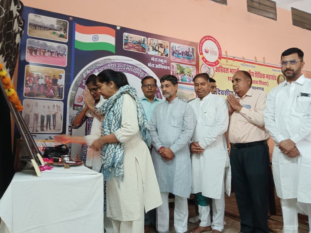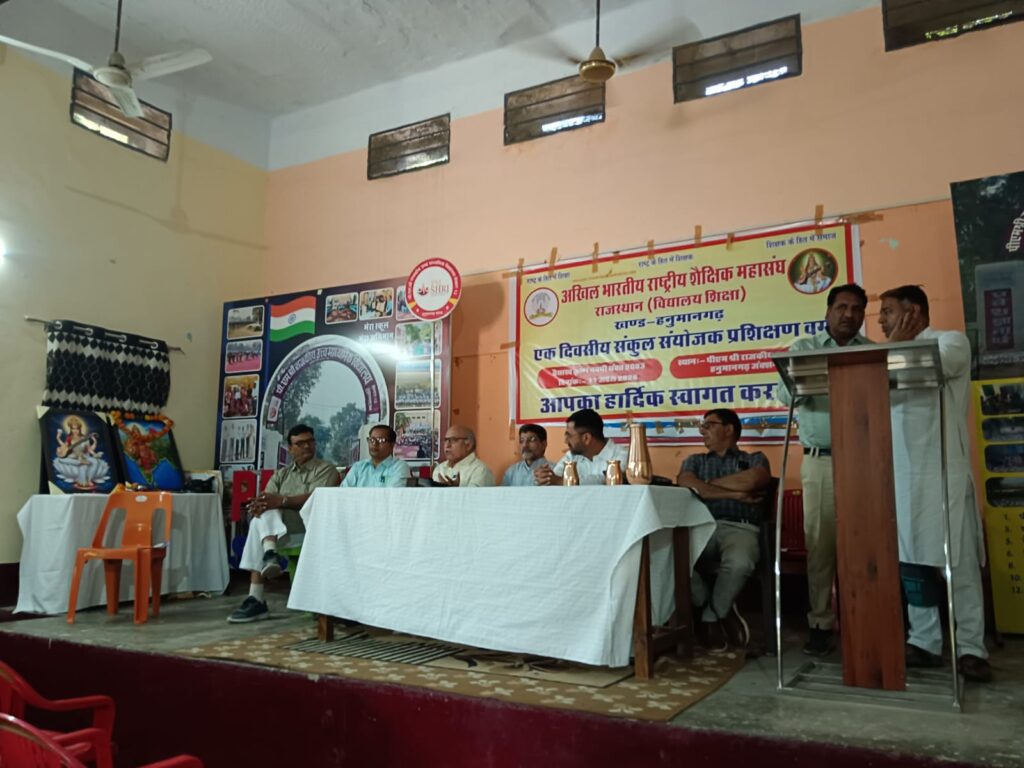 हनुमानगढ़। अखिल भारतीय राष्ट्रीय शैक्षिक महासंघ, विद्यालय शाखा खंड हनुमानगढ़ द्वारा पीएम श्री राजकीय उच्च माध्यमिक विद्यालय, हनुमानगढ़ जंक्शन में प्रथम एक दिवसीय संकुल प्रभारी प्रशिक्षण शिविर का आयोजन किया गया। इस अवसर पर ज्योतिबा फुले जयंती एवं डॉ. भीमराव अंबेडकर जयंती भी उत्साहपूर्वक मनाई गई।कार्यक्रम का शुभारंभ अतिथियों द्वारा मां सरस्वती के दीप प्रज्वलन के साथ हुआ। पार्थ शर्मा ने सरस्वती वंदना प्रस्तुत की, जबकि दानाराम ने संगठन गीत के माध्यम से माहौल को प्रेरणादायी बनाया। पूरे आयोजन को चार सत्रों में विभाजित किया गया। प्रथम सत्र में मुख्य वक्ता संजय शर्मा ने संगठन के चार मूल मंत्र—कार्यकर्ता, कार्यक्रम, कार्यालय एवं कोष—पर विस्तार से प्रकाश डाला।